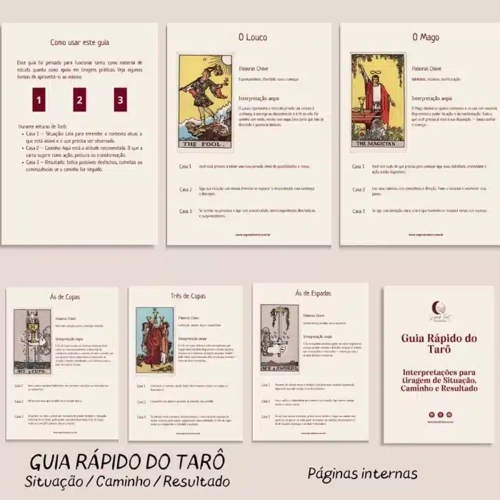 Não é necessário ter experiência prévia. Os arquivos foram desenvolvidos para iniciar ou aprimorar seus estudos de tarô, ao mesmo tempo em que permitem que você registre e acompanhe seu dia a dia conforme as fases da lua. Eles também podem ser usados com outros oráculos, além do tarô.